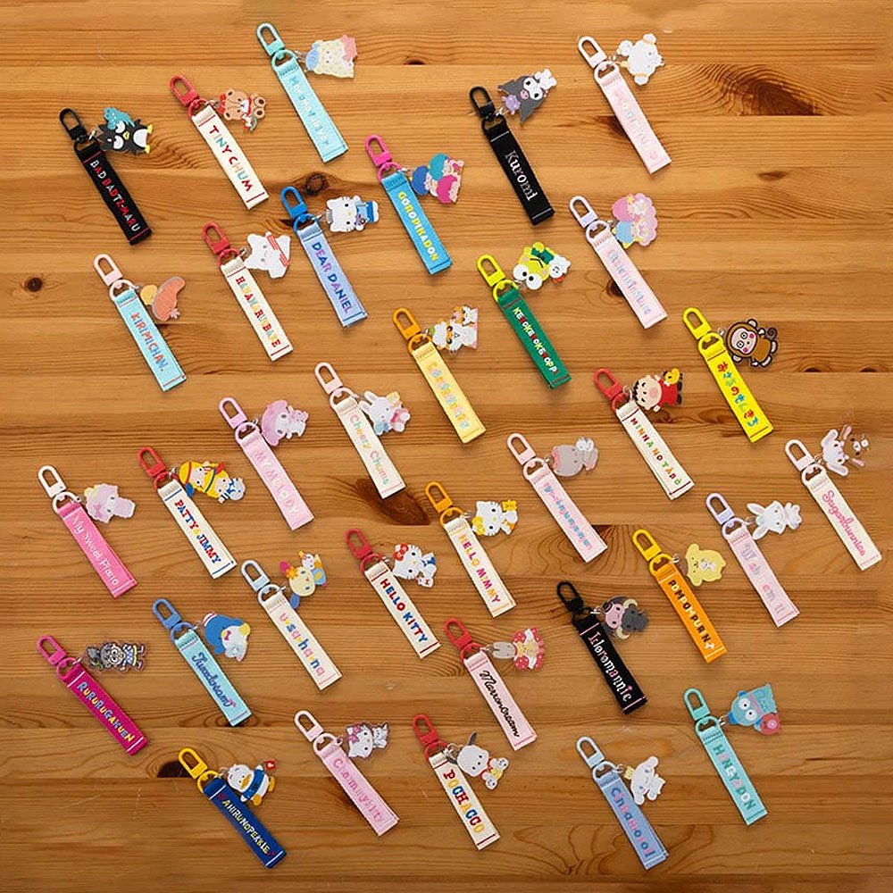 - Add a touch of retro charm to your accessories with this adorable keychain featuring some of your favorite Sanrio characters, both classic and new. With its beautifully embroidered name tag and a cute character charm, this keychain is the perfect way to showcase your love for Sanrio.